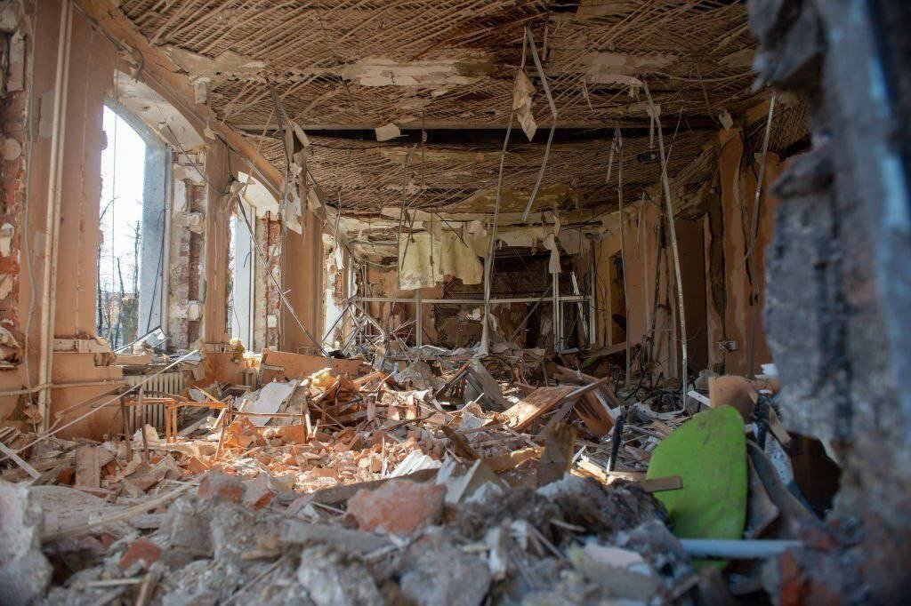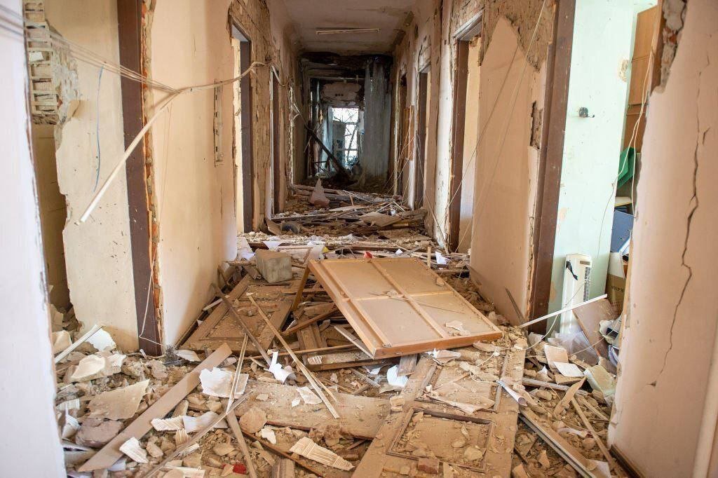 Am Morgen schossen die Eindringlinge auch auf die Gemeinde Dergachiv, es wurde ein Opfer gemeldet. Das Foto zeigt die Folgen des anhaltenden Beschusses von Dergachi.